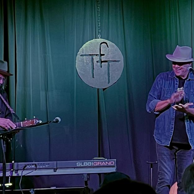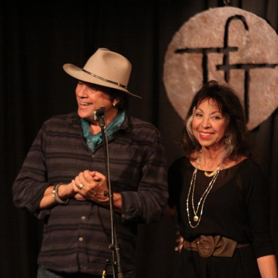 TFTT: The acknowledgments of those operating behind the scenes include our spouses, Kelly Elm and Frank Blundo, and our families, and definitely our team. Our sound engineer, Bear Erickson, who makes sure that the listening experience is enjoyable for everyone. Our audio and video recording crew, Terry Albrecht, Henry Diltz, Ian Palmer, Gary Strobl, Arthur Osha and Jose Navarro. Our setup and breakdown crew, who show up at noon and are always looking for how to improve things from their end, Doug MacLean, Jen Van Schmus, Jim Sobell, Tony DiMase, Jeffrey Chernov, Gerry Wasserman, Jeff and Carey McKinnon. Our front door staff, led by Fran Bowen, and her team of greeters and ushers that welcome people into the room, Brittany Mullenary, Debbie Evans, Pam Libera and Phyliss Moore. We think it’s funny - whereas most places have big guys as their door men, we have an all-female staff! Our photographer, Barry Sigman. Our sponsor coordinators Suzi Trubitz and Jill Goldworn—Suzi is also responsible for the cool metal stage sign that hangs from the curtain. Our graphic designer, Jeremy Ball. Our archivist, Arthur, who organizes all the audio visual files and data storage. Kelly, for selling the merchandise at the shows. Frank, for handling our legal affairs. The venue and the bartenders who thankfully respect the need for silence. And definitely, the sponsors and season-ticketholders—the TFTT community that takes pride in knowing they are part of, and partly responsible for, this community concert series.